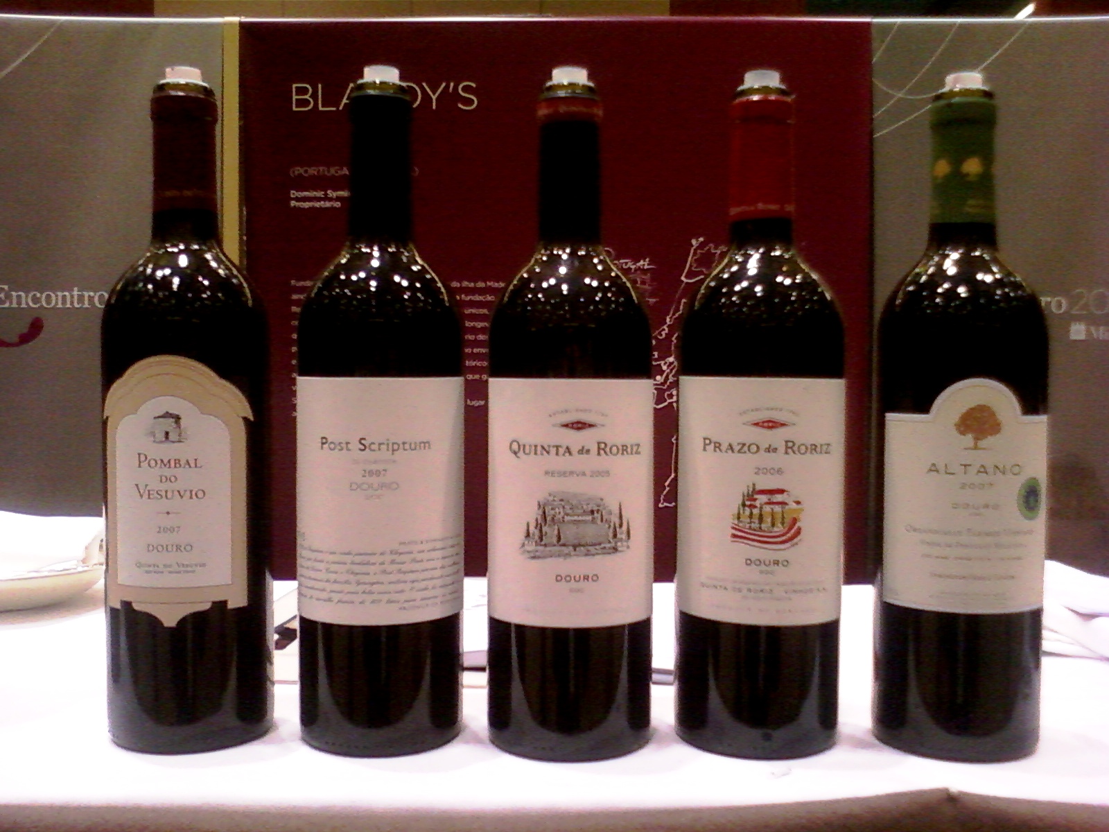 Para finalizar os que mais me marcaram ontem, não poderia deixar de mencionar a visita à Família Symington sempre muito bem representada pelo João Machete Pereira e Dominique Symington. Graham´s, Altano, Quinta de Roriz, Malvedos, DoW’s, Quinta do Vesuvio, Blandy’s Madeira e outros mais, este grupo produz qualidade e os prêmios internacionais só comprovam isso. Os Portos Vintage 2007, boa parte dos quais tive a oportunidade de provar e alguns estão neste Encontro, tiveram pontuação de 100 pontos, 99, 97, 94, ou seja um ano que mais do que de Vintage Clássico, mostrou ser um Ano Symington, não teve para ninguém! Minha paixão por seus vinhos é declarada e conhecida, então que tal conferirem se eu tenho razão para isso? Do mais básico Altano Douro, passando pelo delicioso e fino Altano Biológico, Prazo de Roriz e Quinta de Roriz Reserva com sua riqueza e mineralidade ímpares e sedutoras, aos novos vinhos tintos da Quinta do Vesuvio e o estupendo Post Scriptum o melhor “2º vinho” que já provei, é só alegria. Depois, antes de ir embora, não deixe de finalizar com seus deliciosos Portos Tawny envelhecidos e Vintages 2007 disponíveis. Só isso já basta! Tem mais no entanto, tem um posicionamento de preços muito interessante com seu Altano básico custando por volta dos R$42,00, um Prazo de Roriz e Altano Biológico por volta dos R$65,00 e o Post Scriptum e Pombal do Vesuvio por volta dos R$104,00. Imaginem então se a taxa voltar para comedidos R$1,75 a 1,78!