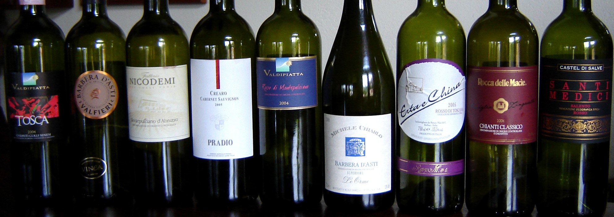 Do Piemonte, na inexistência de Barbaresco e Barolos nestas faixas de preços, gosto muito dos barbera. Nesta prova, tive a possibilidade de tomar e apreciar dois vinhos muito saborosos e encantadores, por preços perfeitamente aceitáveis e “cabíveis” na maior parte dos bolsos. Um deles, o já bem conhecido Le Orme DOC Barbera d’Asti Superiore 05 (Zahil) um verdadeiro porto seguro. Possui uma boa paleta olfativa, na boca é macio, taninos maduros, boa acidez e muito bem equilibrado, um vinho de médio corpo, fácil de agradar e harmonizar, muito saboroso crescendo muito quando levemente refrescado a cerca de 16º. O outro é o Valfieri Barbera d’Asti DOC 04 (Vinea), muito aromático com leves nuances florais, cheio e rico na boca, corpo médio, bem equilibrado apresentando um frescor cativante, taninos finos e sedosos e um muito saboroso final de boca. Daqueles que deixa saudade e nos deixa com água na boca. Queria ter degustado uns Dolcetto d’Alba (que de doce não tem nada, dolcetto é o nome da cepa) e alguns Barbera d’Alba (vinho que me abriu as portas aos vinhos de qualidade há quase 15 anos), porém não consegui. Ainda sigo buscando e assim que conseguir alguns exemplares, compartilharei a experiência com os amigos.
