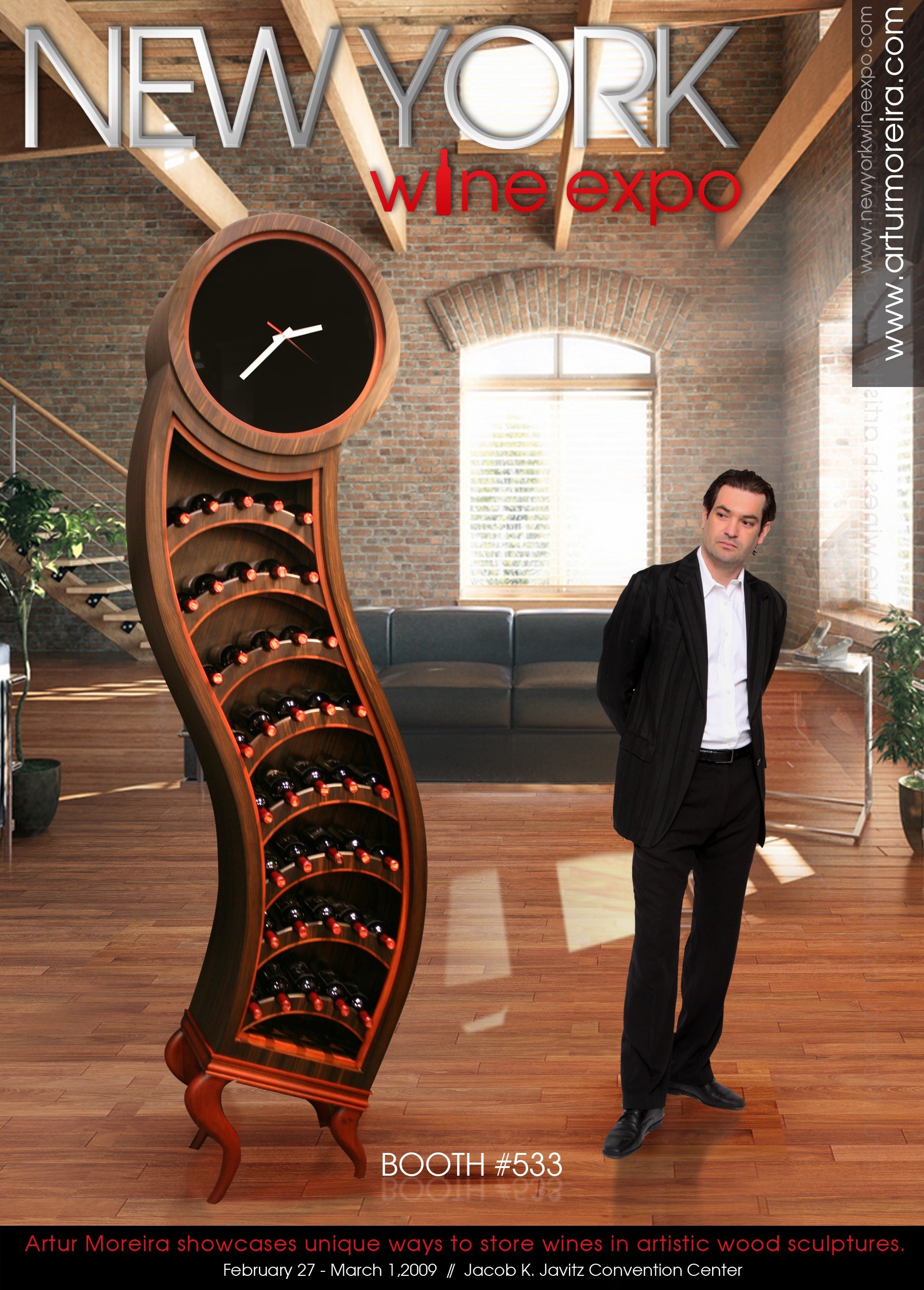 Há 10 anos morando no exterior, o designer chamou a atenção com os racks expostos em uma feira de vinhos da qual participou em Aspen, no Colorado, no ano passado. Foi isso que o fez ser convidado para participar da Wine Expo/NY pela primeira vez. “Uma boa garrafa de vinho precisa ser tratada com carinho, afeto e glamour. Eu acredito que um vinho de qualidade, quando é bem cuidado, proporciona ainda mais prazer à quem vai degustá-lo”, diz Artur, que é um apaixonado por vinhos.