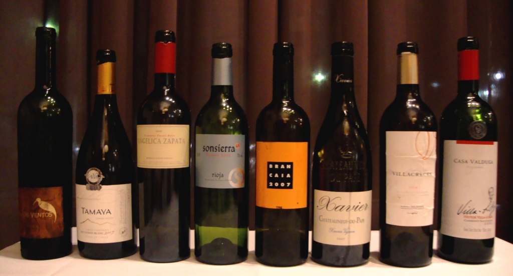 Para acompanhar esses pratos, um verdadeiro caleidoscópio viníco, um deles muito especial e altamente controverso. Gente que adorou, outros que gostaram e uma boa leva que o rejeitou. Não vou me alongar na análise dos vinhos, mas algums comentários tenho que fazer: